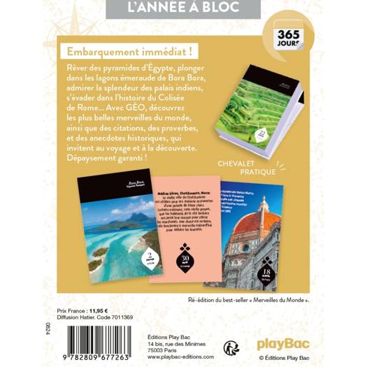Avec GEO, découvrez les plus belles merveilles du monde, ainsi que des citations, des proverbes et des anecdotes historiques, qui invitent au voyage et à la découverte.