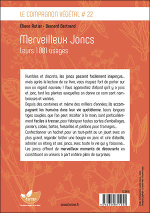 Humbles et discrets, les joncs passent facilement inaperçus… mais après la lecture de ce livre, vous risquez fort de porter sur eux un regard nouveau ! Vous apprendrez d’abord qu’il y a jonc et jonc, tant les plantes auxquelles on donne ce nom sont nombreuses et variées. Depuis des centaines et même des milliers d’années, ils accompagnent les humains dans leur vie quotidienne. Leurs longues tiges souples, que l’on peut récolter à la main, sont particulièrement faciles à tresser, pour fabriquer toutes sortes d’emballages, paniers, cabas, boîtes, faisselles et paillons pour fromages… Confectionner un hochet pour un tout-petit ou un jouet avec un plus grand, regarder brûler une bougie en jonc et cire d’abeille, admirer un étang et ses joncs, avec toute la vie qui y foisonne… Les joncs offrent de merveilleux moments de découverte en constituant un univers à part entière plein de surprises.