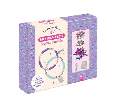Une boîte avec le matériel nécessaire à la réalisation de deux bracelets d'amitié à offrir à son ou sa meilleure amie, avec des perles Heishi permettant d'écrire des messages codés en morse.