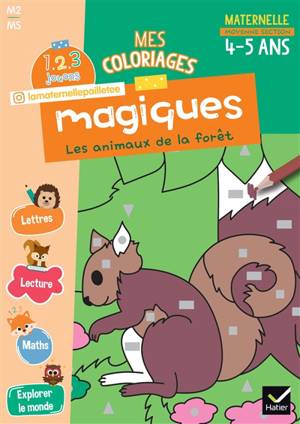 Cet ouvrage de Moyenne section est conçu par une professeure des écoles, Alissia Waeles, active sur les réseaux sociaux et connue sous le pseudonyme La Maternelle pailletée, @lamaternellepailletee. Grâce à ces coloriages magiques sur le thème des animaux de la forêt, votre enfant travaille tous les domaines d’apprentissage de la maternelle : maths, lecture, lettres et explorer le monde.