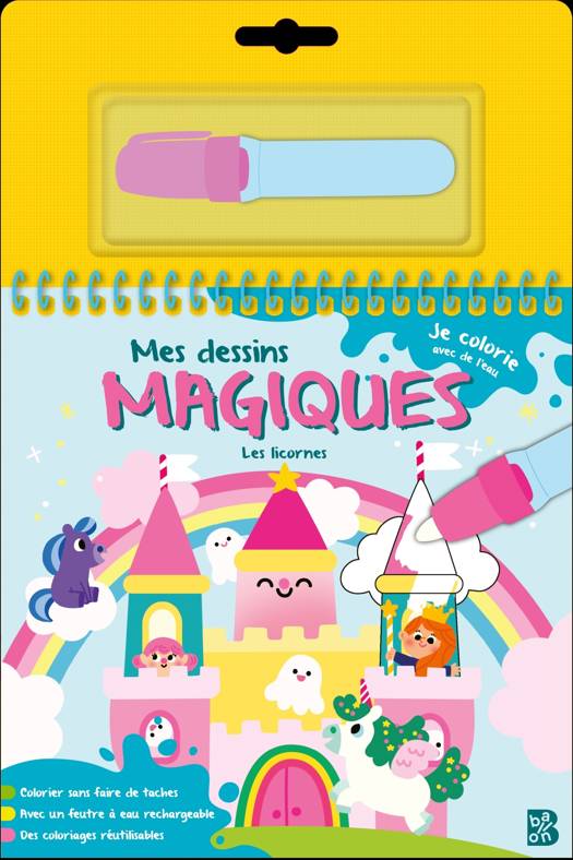 Remplis le feutre d'eau et passe-le sur les coloriages. C'est magique, les couleurs apparaissent !