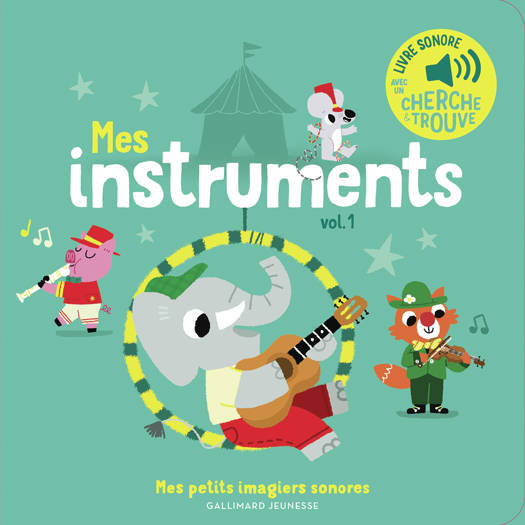 Pour une première découverte sonore des instruments de musique. Pour écouter la flûte, le piano, le violon, la guitare et dle xylophone. Et pour la première fois, un jeu de cherche et trouve sonore avec une puce sonore aléatoire ! L'enfant appuie sur la puce et montre ce qu'il entend. Il appuie à nouveau et cherche à quoi cela correspond, et ce, autant de fois qu'il le souhaite !