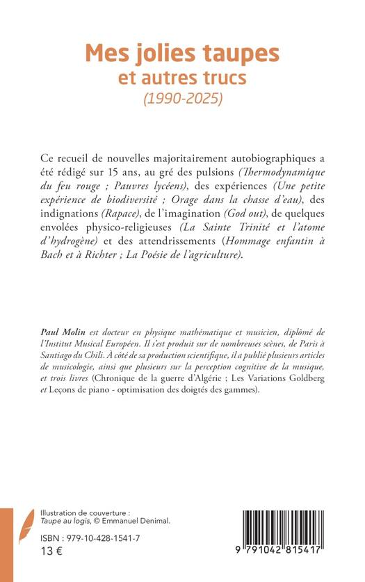 Ce recueil de nouvelles majoritairement autobiographiques a été rédigé sur 15 ans, au gré des pulsions (Thermodynamique du feu rouge; Pauvres lycéens), des expériences (Une petite expérience de biodiversité; Orage dans la chasse d'eau), des indignations (Rapace), de l'imagination (God out), de quelques envolées physico-religieuses (La Sainte Trinité et l'atome d'hydrogène) et des attendrissements (Hommage enfantin à Bach et à Richter; La Poésie de l'agriculture).