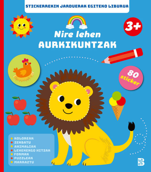 Stickerren liburu hauekin, haurrek zenbait kontzeptu, koloreak, formak eta zifrak, besteak beste, esploratzen dituzte jolasten eta dibertitzen diren bitartean. Stickerrak leku egokian itsatsita eta galdera errazak erantzunda, zure semeak edo alabak behatzeko gaitasuna, logika eta lengoaia modu ludiko eta naturalean garatzen ditu. Dibertimenduzko orduak jolasten eta ikasten!