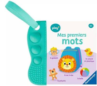 Un album sensoriel pour explorer les premiers mots, avec une barre de dentition en silicone.