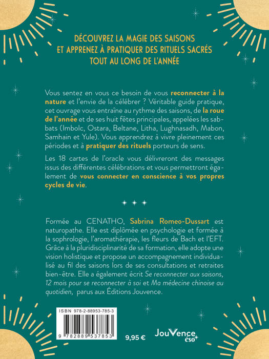Les 18 cartes de l’oracle vous délivreront des messages issus des différentes célébrations et vous permettront également de vous connecter en conscience à vos propres cycles de vie.