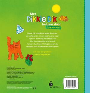 Dikkie Dik en zijn vriendjes ontdekken de vier seizoenen. Op de prachtig geïllustreerde magnetische bladzijden van 'Met Dikkie Dik het jaar door' kunnen kinderen met de magneetjes hun eigen Dikkie Dik-verhaal bedenken: in de lente, de zomer, de herfst en de winter.
