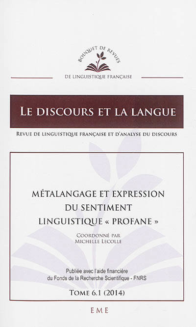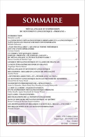 Ce volume s'intéresse au sentiment linguistique qui s'exprime au travers de pratiques linguistiques réflexives, lorsqu'elles sont le fait de non-linguistes.