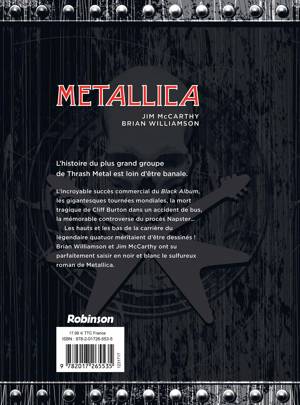 L’histoire du plus grand groupe de Thrash Metal est loin d’être banale. L’incroyable succès commercial du Black Album, les gigantesques tournées mondiales, la mort tragique de Cliff Burton dans un accident de bus, la mémorable controverse du procès Napster... Les hauts et les bas de la carrière du légendaire quatuor méritaient d’être dessinés ! Brian Williamson et Jim McCarthy ont su parfaitement saisir en noir et blanc le sulfureux roman de Metallica.