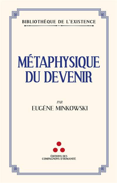 En mars 1966, Eugène Minkowski entamait l'écriture de ce qui demeurera sa dernière et vaste entreprise, qui l'occupera jusqu'à sa disparition, en novembre 1972. Durant les six dernières années de sa vie, Eugène Minkowski se consacra ainsi à la rédaction de cette Métaphysique du devenir, « gros volume » comme il dit, dont il n'est pas évident de définir la nature. Si nous n'avons pas affaire à un essai philosophique à proprement parler, il ne s'agit pas non plus d'un traité psychopathologique, ni d'un récit autobiographique. Ce texte est sans doute au croisement de tout cela et doit en ce sens être lu non pas tant comme un testament systématique que comme une ultime invitation à rechercher l'humain, initiation par l'auteur à sa propre quête de vérité et, finalement, trace vivante d'une pensée toujours soucieuse, jusqu'au dernier instant, de rechercher le sens de notre vie, une vie humaine. Cette métaphysique du devenir semble ainsi s'éclairer par son sous-titre, « à la recherche de... » : quête éternelle de sens dont le sens se réalise à même la quête, recherche de l'essence commune entre l'homme et la nature dans un unique « élan vers... », révélant ainsi que « l'être humain est fait pour chercher, pour scruter l'horizon, [qu'ainsi] il y trouve sa vocation ». Aussi le lecteur devra-t-il, comme Eugène Minkowski lui-même par cette Métaphysique du devenir, « chercher d'abord et avant tout, en découvrant ainsi "l'objet" de la recherche, partiellement toujours d'ailleurs. [Car précisément] c'est qu'il ne s'agit point de retrouver un objet qu'on a égaré ou que des mains étrangères, par malveillance ou par plaisanterie, ont dissimulé ; ni même de découvrir les secrets que la nature cèle. Il s'agit d'autre chose et cet "autre chose", nous le traduisons par nos trois points ».