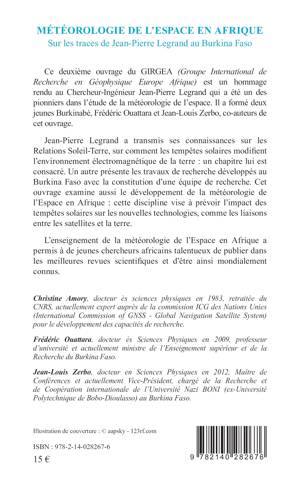 Ce deuxième ouvrage du GIRGEA (Groupe International de Recherche en Géophysique Europe Afrique) est un hommage rendu au Chercheur-Ingénieur Jean-Pierre Legrand qui a été un des pionniers dans l'étude de la météorologie de l'espace. Il a formé deux jeunes Burkinabè, Frédéric Ouattara et Jean-Louis Zerbo, co-auteurs de cet ouvrage. Jean-Pierre Legrand a transmis ses connaissances sur les Relations Soleil-Terre, sur comment les tempêtes solaires modifient l'environnement électromagnétique de la terre : un chapitre lui est consacré. Un autre présente les travaux de recherche développés au Burkina Faso avec la constitution d'une équipe de recherche. Cet ouvrage examine aussi le développement de la météorologie de l'Espace en Afrique : cette discipline vise à prévoir l'impact des tempêtes solaires sur les nouvelles technologies, comme les liaisons entre les satellites et la terre.