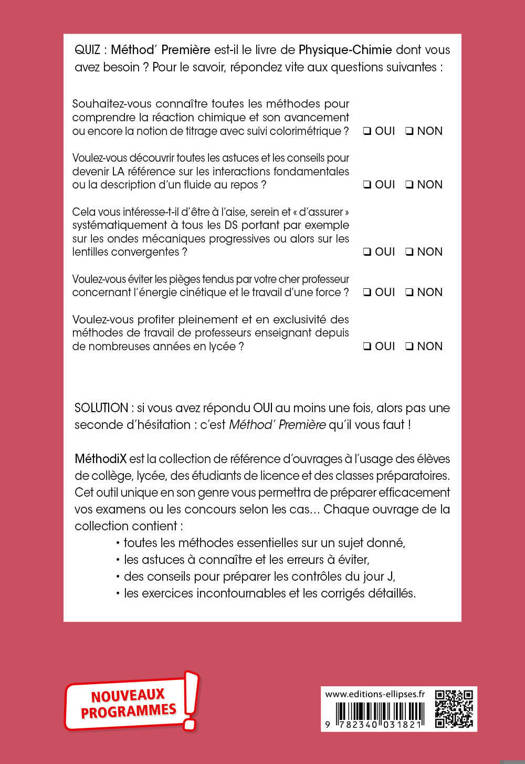 QUIZ : Method'Première est-il le livre de Physique-Chimie dont vous avez besoin ? Pour le savoir, répondez vite aux questions suivantes :