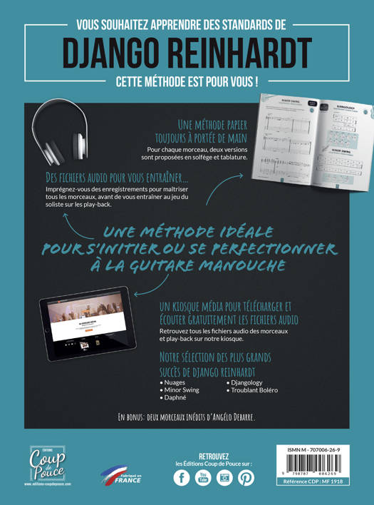 Spécial Django Reinhardt ! Vous trouverez dans cette méthode tous les morceaux suivants écrits en solfège et tablatures :