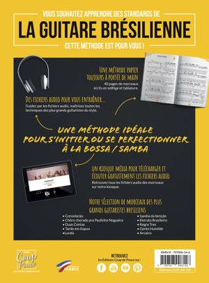 Les Maîtres de la guitare brésilienne Avec ce recueil, vous apprendrez à jouer les standards brésiliens des grandes figures de la guitare brésilienne. Tous les morceaux ont été choisis à partir d’enregistrements sonores, la richesse des harmonies et des rythmiques sont fidèlement retranscrits dans ce recueil.