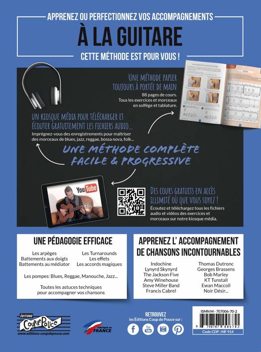 Dans cette méthode, vous trouverez les techniques et astuces permettant d’accompagner de nombreux styles musicaux avec une guitare acoustique.