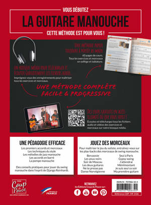 Vous êtes passionné de jazz manouche et débutez la guitare, cette méthode avec vidéos et fichiers audio disponibles gratuitement sur notre kiosque média est incontournable pour apprendre tous les secrets de ce style!