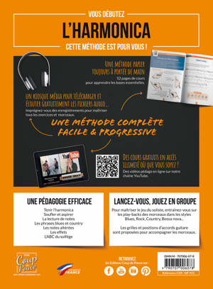 Facile, complète et progressive, cette méthode est idéale si vous débutez l'harmonica diatonique.