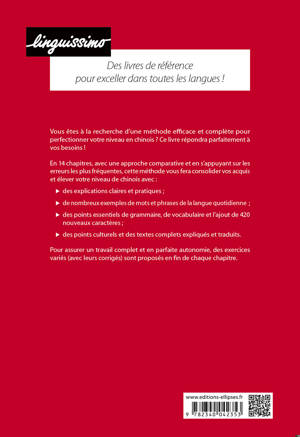 Cet ouvrage d’apprentissage du chinois de niveau B1-B2-C1 reprend toutes les notions à maîtriser en 14 chapitres, avec :