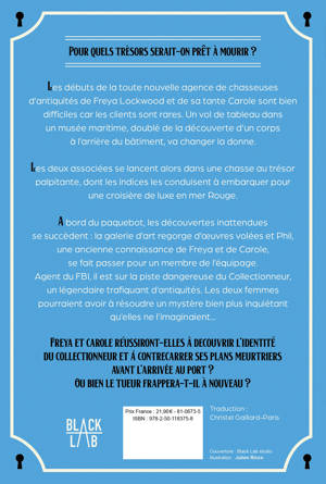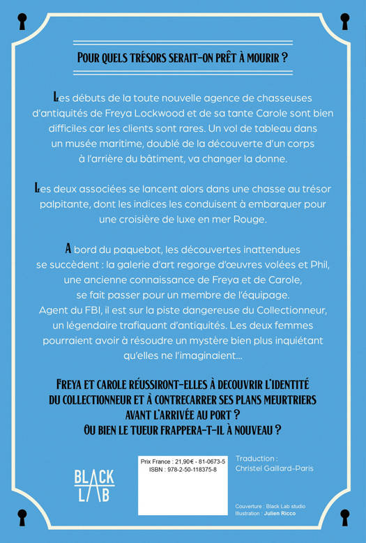Freya Lockwood et sa tante Carole viennent de créer leur agence de chasseuses d’antiquités. Mais les débuts sont difficiles car les clients sont rares. Jusqu’à ce que le vol d’un tableau au musée maritime de Lowestoft, doublé de la découverte d’un corps à l’arrière du bâtiment, lance Carole et sa nièce dans une nouvelle chasse au trésor palpitante. Les indices les mènent à bord d’une croisière culturelle en mer Rouge. A leur plus grande surprise, Freya et Carole retrouvent une ancienne connaissance : un agent du FBI qui se fait passer pour un membre de l’équipage. Il est sur la piste dangereuse du Collectionneur, figure légendaire à la tête d’un trafic international d’antiquités depuis plus d’un siècle. Rapidement, les deux affaires s’entremêlent. Le risque n’a jamais été aussi grand pour Freya et Carole car le Collectionneur est prêt à tout pour garder son identité secrète.