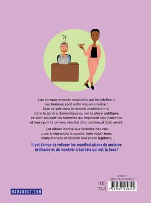 Les comportements masculins qui invisibilisent les femmes sont enfin mis en lumière ! Que ce soit dans le monde professionnel, dans la sphère domestique ou sur la place publique, ce sont souvent les hommes qui imposent leur présence et leurs points de vue, résultat d’un patriarcat bien ancré. Cet album donne aux femmes des clés pour (re)prendre la parole, faire valoir leurs compétences et investir leur place légitime. Il est temps de refuser les manifestations du sexisme ordinaire et de montrer à tou·te·s qui est la boss !