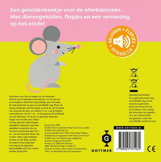 Het leukste geluidenboekje met huisdieren voor kindjes vanaf 1 jaar! 'Wat hoor ik daar? - Miauw!' is een innovatief en interactief flapjesboek dat perfect is voor nieuwsgierige peuters. In dit kartonboekje met het thema huisdieren hoor je vijf verschillende dierengeluiden. Druk op de geluidsknop om een mysterieus geluid te horen. Raad welk dier je hoort en til daarna de stevige kartonnen flapjes op om te zien wie zich daar verstopt. Was het de muis, de vis, de hond of de kat? Als verrassing aan het einde: een geluidje en een spiegel waarin je kindje zichzelf kan zien!