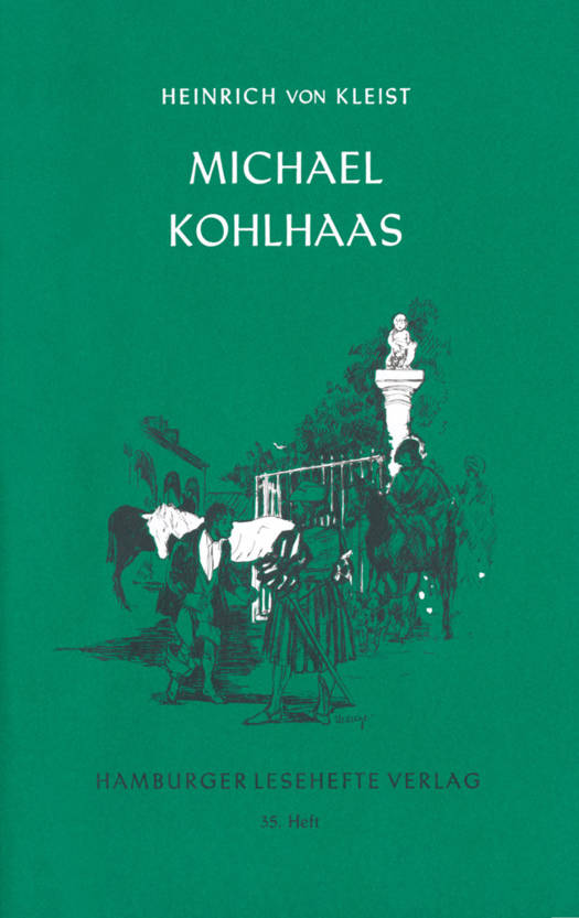Der Rosshändler Michael Kohlhaas sucht sein Recht und wird darüber zum Räuber. Er muss erkennen, dass es das absolute Recht nicht geben kann, sondern dass die Rechtsprechung an die Gesellschaft gebunden ist. Schliesslich ereilt ihn selbst das Gericht, dem er sich beugt: Er stirbt auf dem Schaffot. Diese Novelle beruht, wie der Untertitel angibt, auf einer alten Chronik, aus der der Anhang Auszüge bringt. Über Leben und Werk des Dichters gibt das Nachwort Auskunft. Die Anmerkungen enthalten Erklärungen für den Schüler.