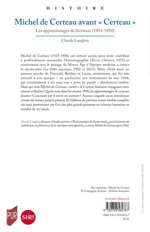 Michel de Certeau (1925-1986) est surtout connu pour avoir contribué à profondément renouveler l'historiographie (Écrire l'histoire, 1975) et entièrement revu le passage du Moyen Âge à l'époque moderne à travers le mysticisme (La Fable mystique, 1982 et 2013). Mais c'était aussi un penseur proche de Foucault, Barthes et Lacan, notamment, qui fut très attentif à son époque - en particulier aux événements de mai 1968, qui constituèrent à ses yeux une « prise de parole » absolument inédite.