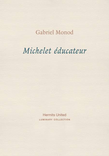 En 1894, Gabriel Monod publia Les Maitres de l'histoire. Selon l'historien, pour Michelet, " Optimisme et liberte sont les bases de l'education ; optimisme, liberte et justice sont les bases de la societe. " L'edition bilingue de ce texte de Monod sur Michelet fait partie de la Collection Luminary.