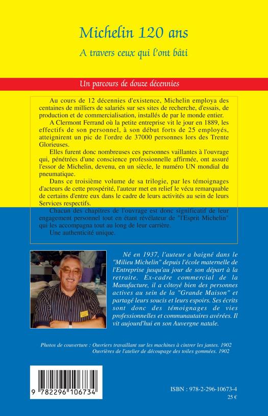 Au cours de 12 décennies d'existence, Michelin employa des centaines de milliers de salariés sur ses sites de recherche, d'essais, de production et de commercialisation, installés de par le monde entier. Dans ce troisième volume de sa trilogie, par les témoignages d'acteurs de cette prospérité, l'auteur met en relief le vécu remarquable de certains d'entre eux dans le cadre de leurs activités au sein de leurs services respectifs.