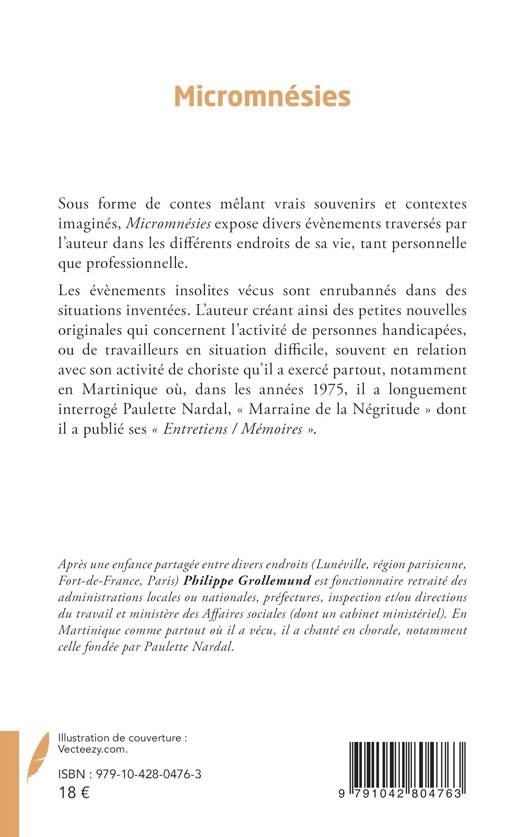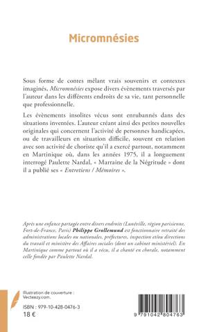 Sous forme de contes mêlant vrais souvenirs et contextes imaginés, Micromnésies expose divers évènements traversés par l’auteur dans les différents endroits de sa vie, tant personnelle que professionnelle.