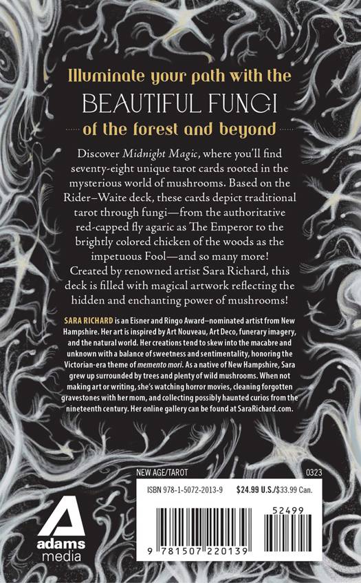 These ethereal illustrations were created by Eisner- Award-nominated artist and mushroom enthusiast Sara Richard whose art is inspired by the natural world and the trees and mushrooms she was surrounded by while growing up in New Hampshire. This deck is filled with magical artwork reflecting the hidden power, magic, and wonder of the woods. So whether you're an avid mushroom hunter or you just want to add some earthy magic to your tarot card practice, this deck is for you.