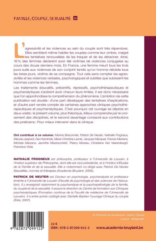 L'agressivité et les violences au sein du couple sont très répandues. Elles semblent même habiter les couples comme leur ombre, malgré les tentatives renouvelées de les traquer et de les déraciner. Il est donc nécessaire que l'on approfondisse la compréhension du phénomène. L'ambition de cette publication est double : d'une part développer des tentatives d'explications, et d'autre part rendre compte de certaines approches cliniques psychothérapeutiques et psychanalytiques.