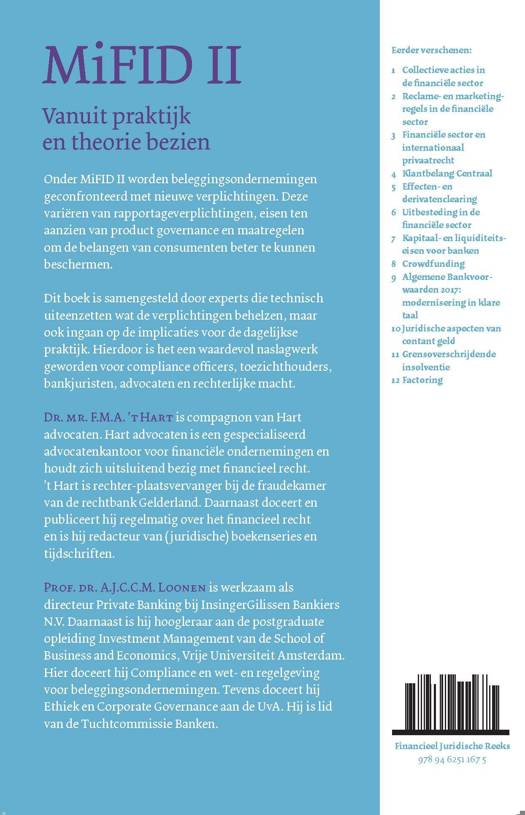 Dit boek is samengesteld door experts die technisch uiteenzetten wat de verplichtingen behelzen, maar ook ingaan op de implicaties voor de dagelijkse praktijk. Hierdoor is het een waardevol naslagwerk geworden voor compliance officers, toezichthouders, bankjuristen, advocaten en rechterlijke macht.