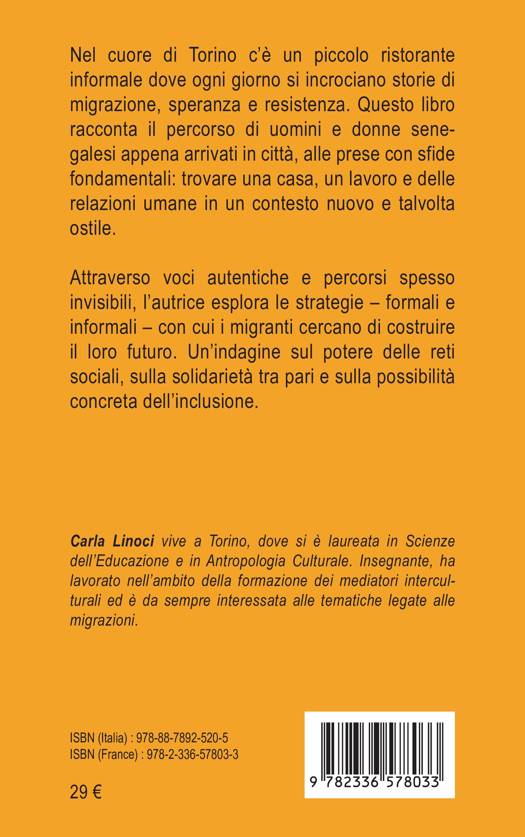 Nel cuore di Torino c'è un piccolo ristorante informale dove ogni giorno si incrociano storie di migrazione, speranza e resistenza. Questo libro racconta il percorso di uomini e donne senegalesi appena arrivati in città, alle prese con sfide fondamentali : trovare una casa, un lavoro e delle relazioni umane in un contesto nuovo e talvolta ostile.