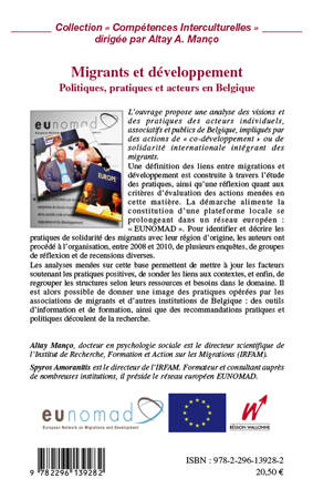 L'ouvrage propose une analyse des visions et des pratiques des acteurs individuels, associatifs et publics de Belgique, impliqués par des actions de « co-développement » ou de solidarité internationale intégrant des migrants. Pour identifier et décrire les pratiques de solidarité des migrants avec leur région d'origine, les auteurs ont procédé à l'organisation, entre 2008 et 2010, de plusieurs enquêtes, de groupes de réflexion et de recensions diverses.