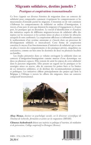 Comment s'expriment les comportements et les mouvements d'entraide parmi les migrants ? Les études présentées envisagent la solidarité dans un contexte d'émigration/immigration comme moteur d'une dynamique sur deux ou plusieurs espaces. Les initiatives ciblent principalement des projets qui lient la Belgique à l'Afrique à travers les efforts des migrants, dans un contexte comparatif international.