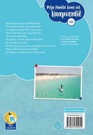 Domingos woont in Rotterdam. Zijn familie komt uit Kaapverdië. In vakanties gaat hij er vaak heen. Naar oma Maria en oom Manuel. Het land is prachtig. Hij geniet van de zeeschildpadden en van het carnaval. En hij eet graag warme ontbijtjes en verse vis. Meer weten over Kaapverdië? Domingos vertelt erover in dit boek.