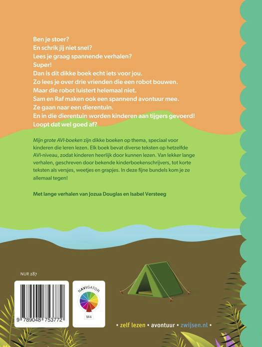 Mijn grote AVI-boeken zijn dikke boeken op thema, speciaal voor kinderen die leren lezen. Dit superdikke boek staat boordevol avonturen op hetzelfde AVI-niveau. Van lekker lange verhalen, geschreven door bekende kinderboekenschrijvers als Isabel Versteeg en Jozua Douglas, tot korte teksten als versjes, weetjes en grapjes. In deze fijne bundel kom je ze allemaal tegen. Zo kunnen nieuwsgierige kinderen van 7-8 jaar lekker doorlezen over hetzelfde thema op hetzelfde AVI-niveau.