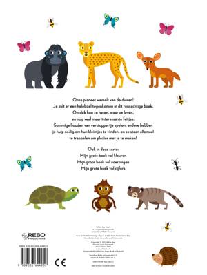 Onze planeet wemelt van de dieren! Je zult er een heleboel tegenkomen in dit reusachtige boek. Ontdek hoe ze heten, waar ze leven, en nog veel meer interessante feitjes. Sommige houden van verstoppertje spelen, andere hebben je hulp nodig om hun kleintjes te vinden, en ze staan allemaal te trappelen om plezier met je te maken!