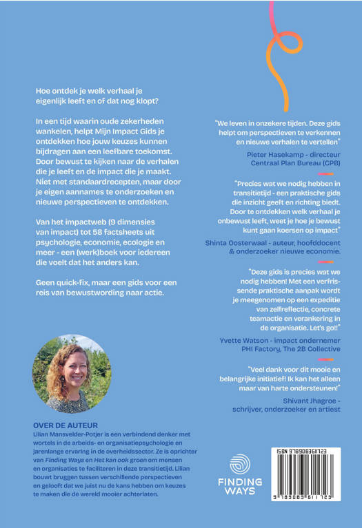 Hoe ontdek je welk verhaal je eigenlijk leeft en of dat nog klopt? In een tijd waarin oude zekerheden wankelen, helpt Mijn Impact Gids je ontdekken hoe jouw keuzes kunnen bijdragen aan een leefbare toekomst. Door bewust te kijken naar de verhalen die je leeft en de impact die je maakt. Niet met standaardrecepten, maar door je eigen aannames te onderzoeken en nieuwe perspectieven te ontdekken. Van het impactweb (9 dimensies van impact) tot 58 factsheets uit psychologie, economie, ecologie en meer - een (werk)boek voor iedereen die voelt dat het anders kan. Geen quick-fix, maar een gids voor een reis van bewustwording naar actie.
