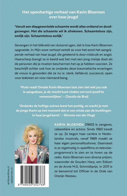 Mijn ware verhaal is het openhartige en aangrijpende verhaal van Karin Bloemen over haar jeugd, die getekend wordt door misbruik, mishandeling en angst.