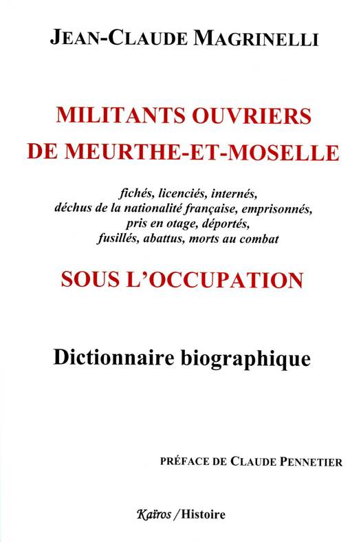 L'auteur présente le parcours de 204 d'entre eux, parmi les plus caractéristiques. Ce livre, qui utilise les sources françaises et allemandes de la période d'Occupation consultées par dérogation, complète utilement le Dictionnaire biographique des militants ouvriers de Meurthe-et-Moselle publié en 1973 par le Père Serge Bonnet et Étienne Kagan. Il est aussi, par ses apports biographiques des militants de Meurthe-et-Moselle, une contribution à l'enrichissement de l'ouvrage de référence, Le Maitron, le Dictionnaire biographique du mouvement ouvrier et social français.