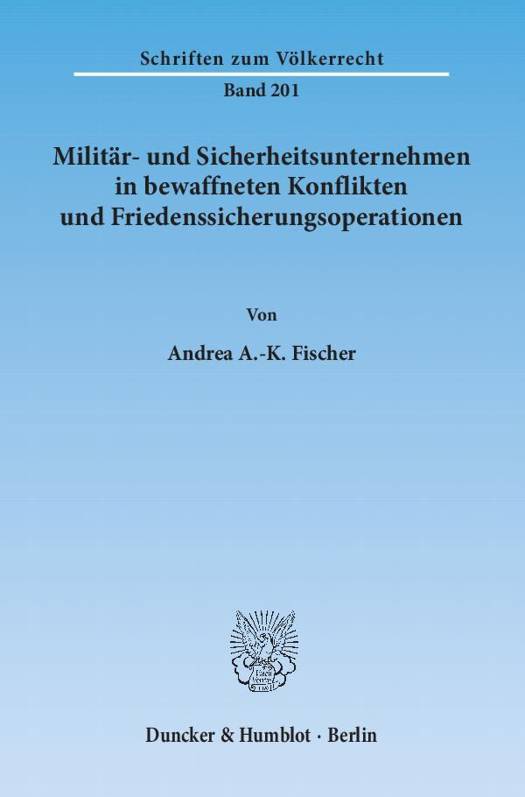 Militär- und Sicherheitsunternehmen sind seit einigen Jahren bedeutende Akteure in bewaffneten Konflikten und Friedenssicherungsoperationen. Sie werden von Staaten, internationalen Organisationen, aber auch nichtstaatlichen Akteuren wie humanitären Organisationen oder Unternehmen, herangezogen. Die Autorin analysiert unter Berücksichtigung der Staatenpraxis und internationalen Judikatur umfassend die bestehenden völkerrechtlichen Fragen des Einsatzes von Militär- und Sicherheitsdienstleistern.