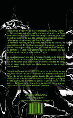 Ce court roman est une réécriture du Carmilla de Sheridan Le Fanu mais raconté du point de vue de la vampire, Carmilla, qui tient à donner sa version des faits et surtout rétablir la vérité concernant son idylle avec Laura, l'héroïne ingénue de Le Fanu qui, on le verra, ne l'était pas tant. Devoir de mémoire, besoin de se confier, volonté de balayer les stéréotypes qui lui collent à la peau, Carmilla va se livrer pendant une nuit à une jeune éditrice pour raconter son histoire. Ce court roman est une ode à l'amour. Un amour pur entre deux femmes qui va bien au-delà des mÅurs du 19e siècle.