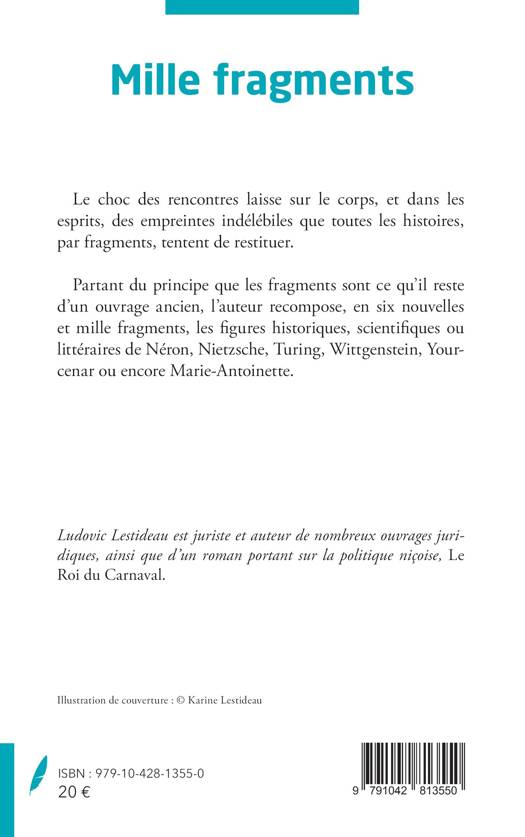 Le choc des rencontres laisse sur le corps, et dans les esprits, des empreintes indélébiles que toutes les histoires, par fragments, tentent de restituer. Partant du principe que les fragments sont ce qu'il reste d'un ouvrage ancien, l'auteur recompose, en six nouvelles et mille fragments, les figures historiques, scientifiques ou littéraires de Néron, Nietzsche, Turing, Wittgenstein, Yourcenar ou encore Marie-Antoinette.