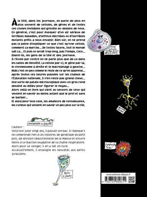 À la télé, dans les journaux, on parle de plus en plus souvent de cellules, de gènes et de toutes ces choses invisibles qui grouille au-dedans de nous. En général, c'est pour évoquer d'un air sérieux de terribles maladies, d'affreux microbes ou d'horribles mutants prêts à nous envahir. Bien sûr, on ne prend pas la peine d'expliquer ce que c'est qu'une cellule, comment ça marche… De toutes façons, tout le monde sait ça… À l'école par contre on ne parle plus que de ça dans les salles de Hesvété. La cellule par-ci, le gène par-là, le chromosome à droite et le macrophage à gauche… Mais c'est un peu comme le reste de ce qu'on apprend… après toutes ces heures passées sur les chaises de l'Éducation nationale, il n'en reste pas grand chose… Une sorte de patate microscopique avec un gros rond dessiné au milieu pour figurer le noyau… Alors voilà un livre qui vient au secours de ceux qui veulent en savoir au moins autant que le prof et sans se barber… Et aussi pour tous ceux, les amateurs de connaissance, les curieux qui veulent en savoir un peu plus sur la Vie.