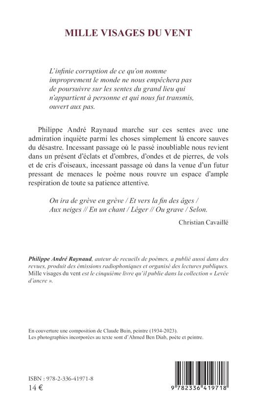 ouvert aux pas. Philippe André Raynaud marche sur ces sentes avec une admiration inquiète parmi les choses simplement là encore sauves du désastre. Incessant passage où le passé inoubliable nous revient dans un présent d'éclats et d'ombres, d'ondes et de pierres, de vols et de cris d'oiseaux, incessant passage où dans la venue d'un futur pressant de menaces le poème nous rouvre un espace d'ample respiration de toute sa patience attentive.