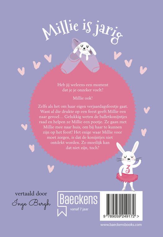 Millie is jarig. Haar moeder organiseert een groot feest. Normaal ben je dan blij. Maar Millie niet. Al die drukte op een feest geeft Millie een naar gevoel... Gelukkig weten de balletkonijntjes raad en helpen ze Millie een pootje. Ze gaan met Millie mee naar huis, om bij haar te kunnen zijn op het feest! Het enige waar Millie voor moet zorgen, is dat de konijntjes niet ontdekt worden. Zo moeilijk kan dat niet zijn, toch?