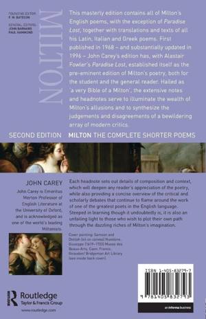 This masterly edition contains all of Milton's English poems, with the exception of Paradise Lost, together with translations and texts of all his Latin, Italian and Greek poems. First published in 1968 - and substantially updated in 1996 - John Carey's edition has, with Alastair Fowler's Paradise Lost, established itself as the pre-eminent edition of Milton's poetry, both for the student and the general reader.