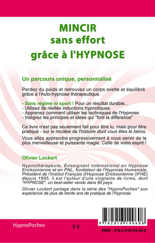 Un parcours unique, personnalisé. Perdez du poids et retrouvez un corps svelte et équilibré grâce à l'Auto-hypnose thérapeutique. Sans régime ni sport, pour un résultat durable. Utilisez de réelles inductions hypnotiques. Apprenez comment utiliser les techniques de l'Hypnose. Intégrez les principes et idées qui "font la différence"... Ce livre n'est pas seulement fait pour être lu, mais pour être pratiqué – sur le modèle de l'histoire dont vous êtes le héros. Vous allez apprendre progressivement à vous servir de la plus merveilleuse et puissante magie. Celle de votre esprit !